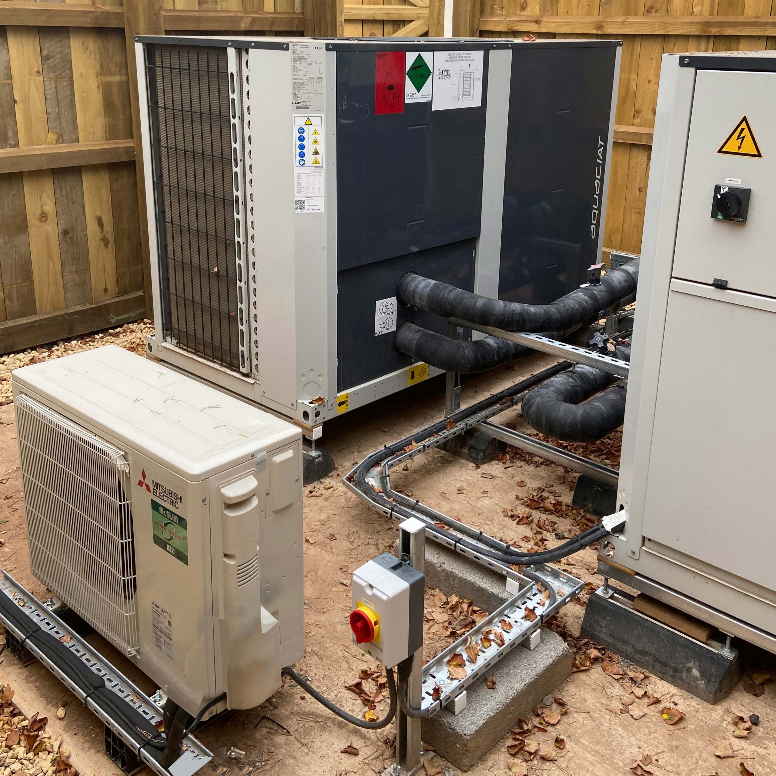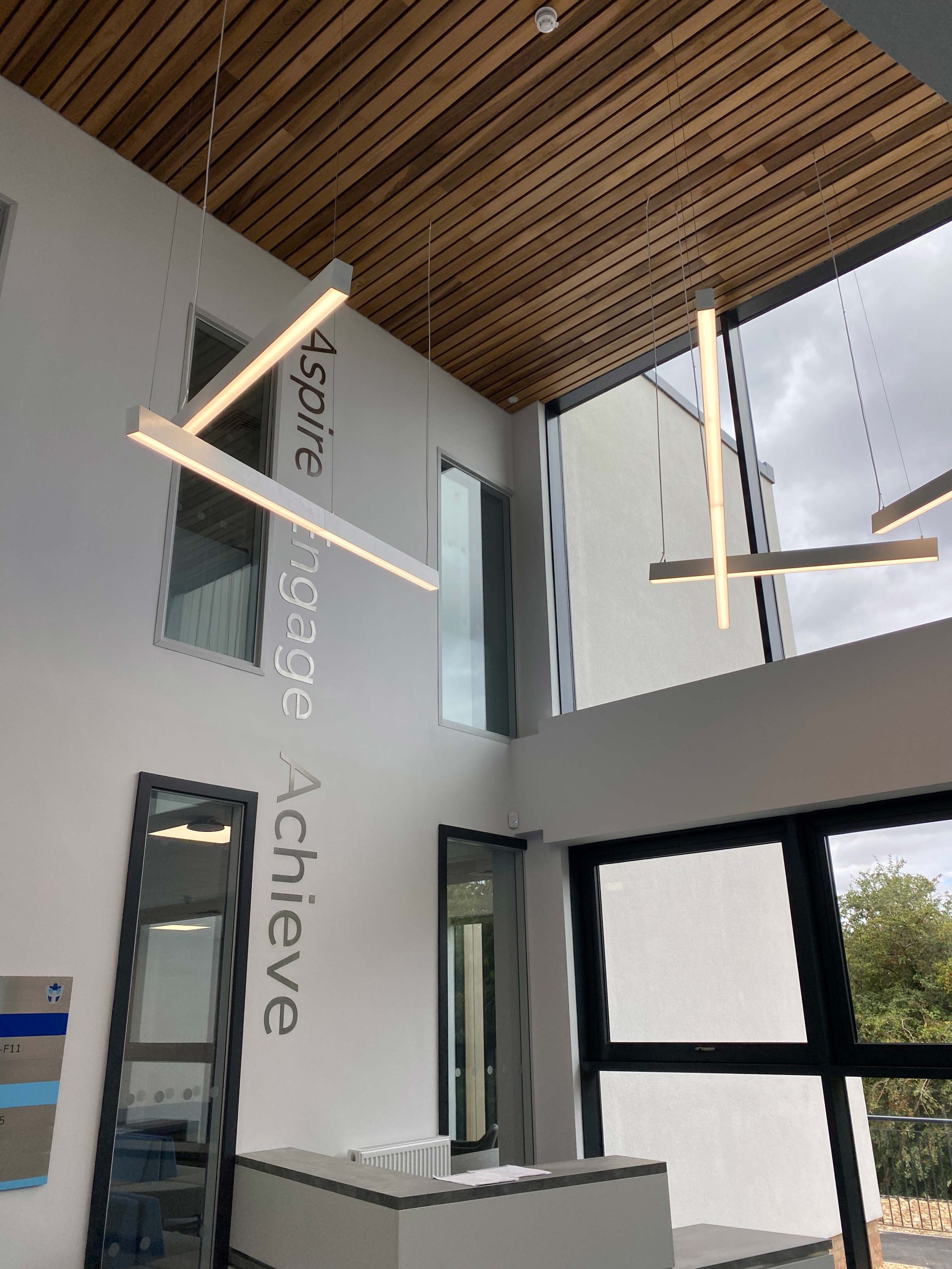 All spaces utilise LED lighting. An air source heat pump array is located outside the building to provide LPHW heating via concealed systems located in the voids and radiators in transitory areas.