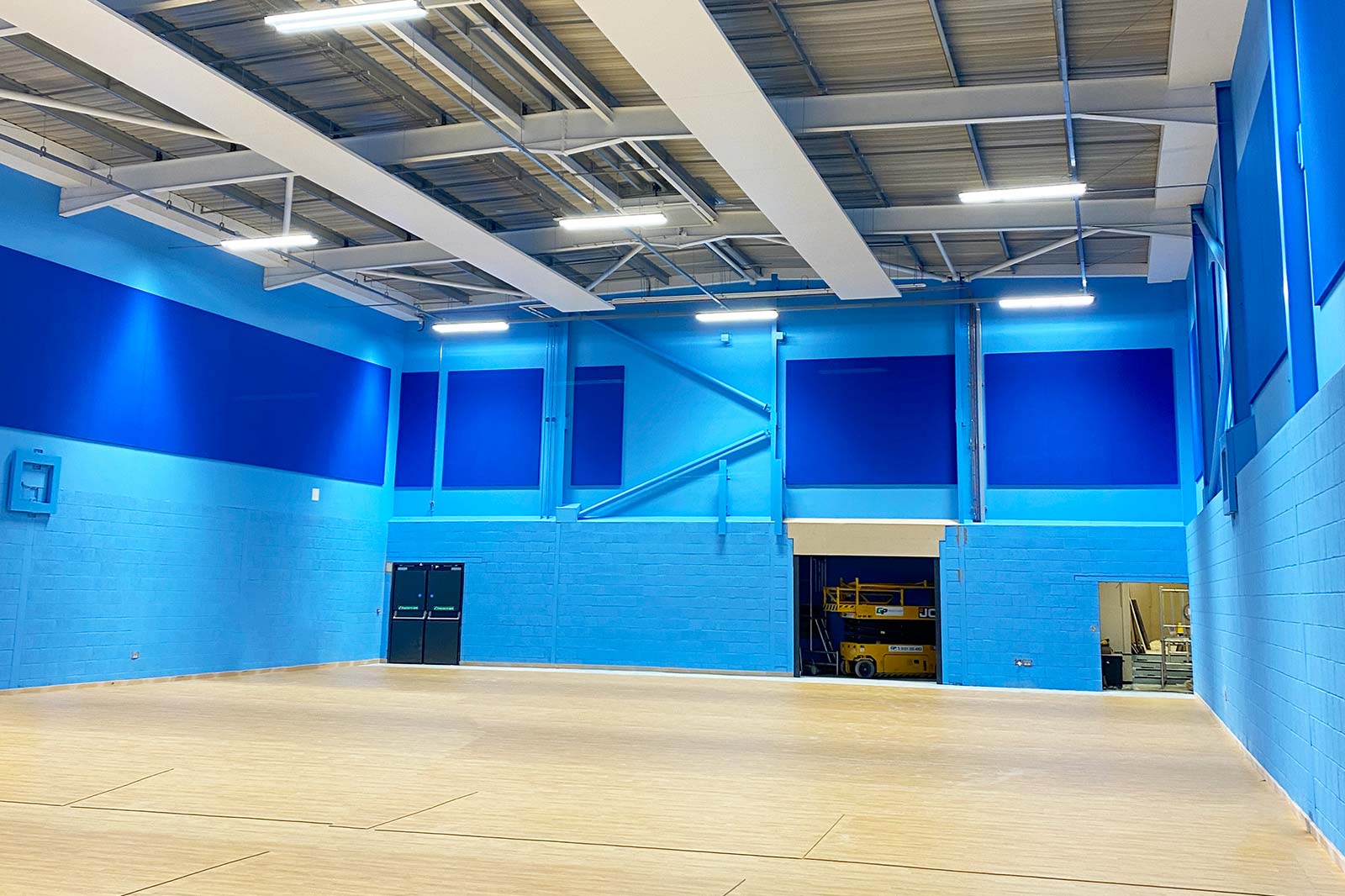 New LED lighting was employed, and all services were designed to suit the use of the space for both sports purposes and for the sitting of exams.