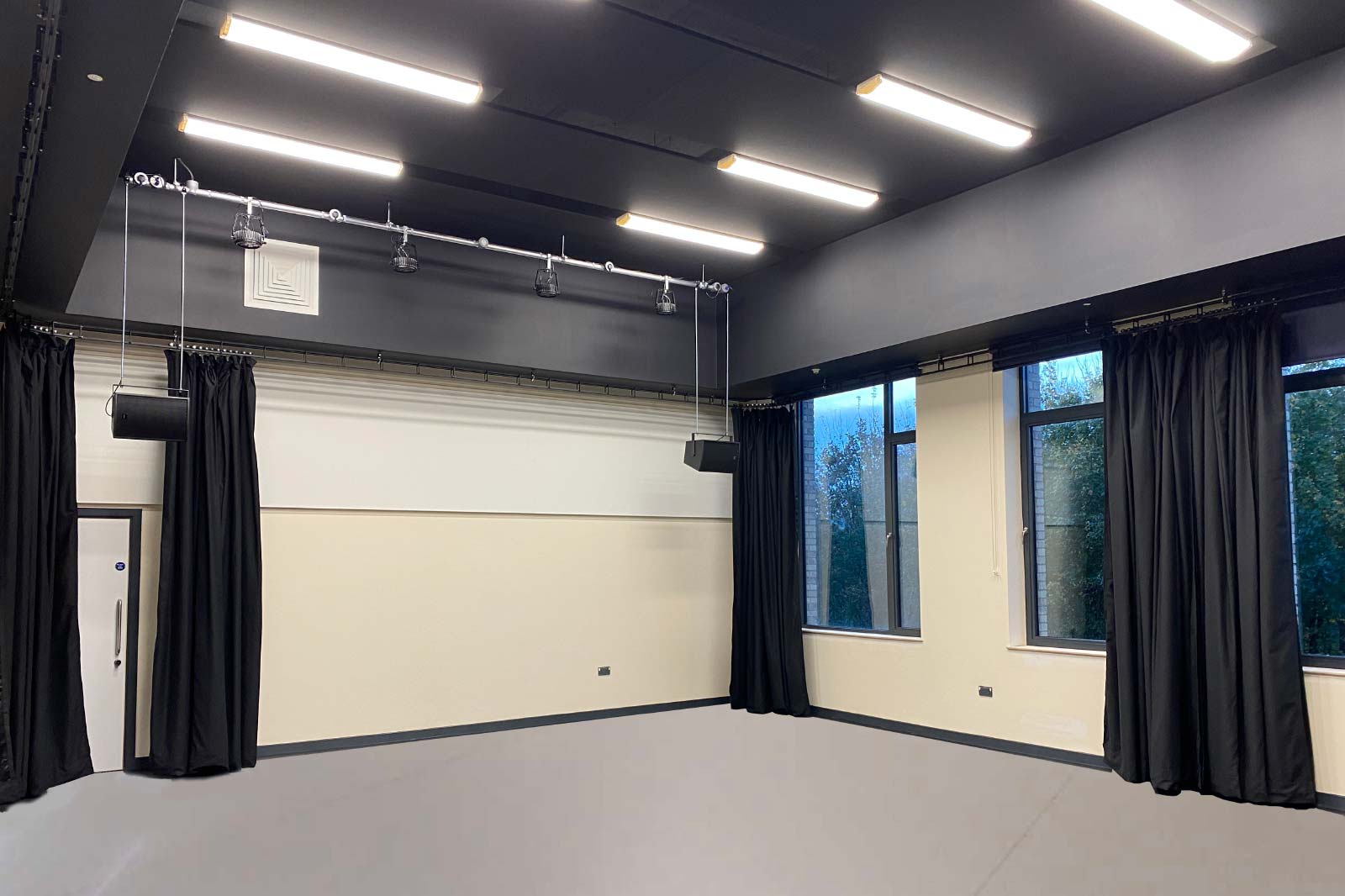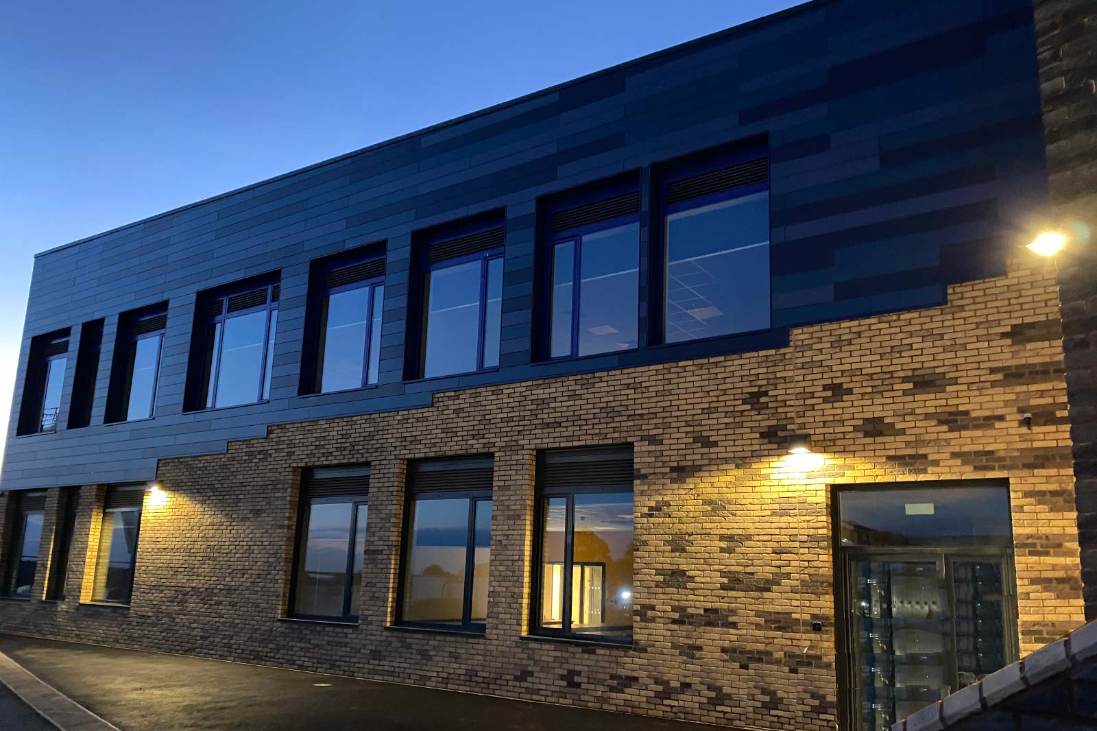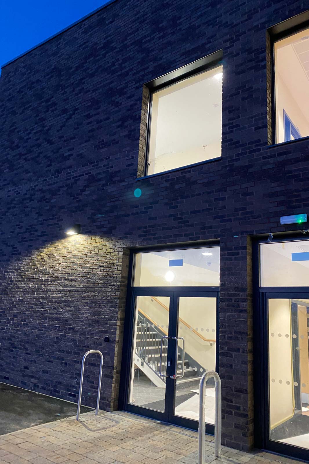The new block consists of a new dining hall with catering kitchen, further classroom space including two new, dedicated Music Classrooms, with facilities for individual group practice and recording, a Drama Space, Career Hub and a flexible 160m2 Examination Space at First Floor Level, which can be divided into 3 classrooms by the use of folding wall divisions.